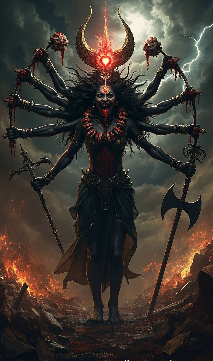 Одной из ключевых особенностей гнева богинь всегда является его связь с фундаментальной способностью к одновременному порождению и разрушению форм. Гнев женских божеств не просто уничтожает уже имеющуюся структуру, но возвращает реальность к первородному, тотипотентному состоянию. Именно поэтому женская ярость часто выражается образами «чёрной» или «тёмной» богини (Кали, Черная Артемида, Геката, Тиамат), воплощающей принципиальную неопределённость и бездну, из которой рождаются и в которую возвращаются все формы. Гнев таких богинь не является наказанием за нарушение каких-либо законов или правил, как в случае с мужскими божествами, а представляет собой проявление более глубокого уровня реальности, на котором всякая определённость оказывается временной и иллюзорной.
