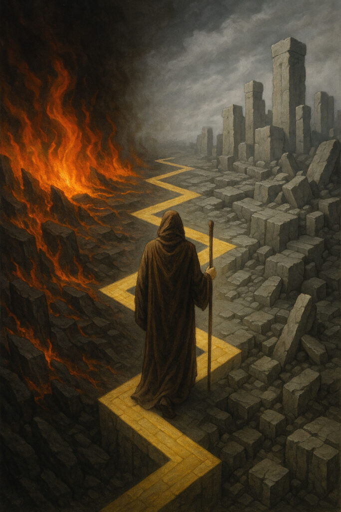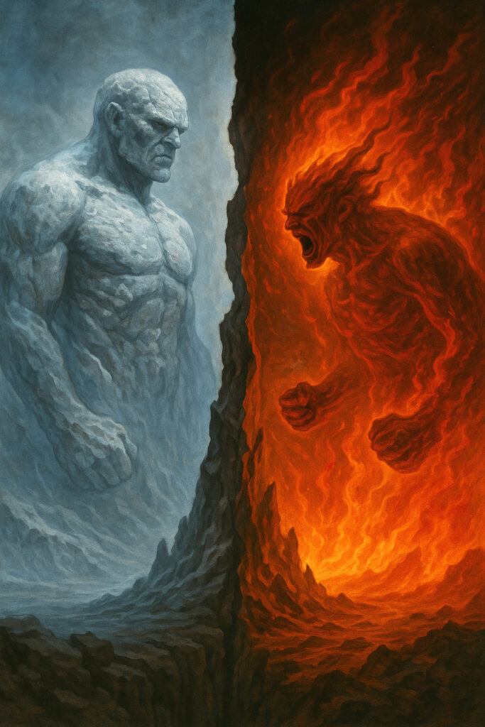 Для мага противостояние Архонтным формам может быть опасным именно потому, что, сопротивляясь предопределенности гемармена, он может «провалиться» в хаос кипящей неопределенности Муспелльсхейма. Конечно, маг, стремящийся выйти из-под предопределённости (гемармена), должен противостоять Архонтам. Однако в этом сопротивлении он рискует «провалиться» в Муспелльсхейм — хаотическую, пылающую потенциальность, где формы разрушаются быстрее, чем успевают оформиться. И хотя понятно, что Нифльхейм содержит все возможности определенности, а Муспелльсхейм – все возможности активного проявления, выход из-под «власти форм» может лишь низринуть в хаос разрушения. Разрушение полезно лишь тогда, когда оно «расчищает среду» для нового созидания, но именно это новое созидание – и есть силы фиксации, то есть – проявления частичного «оледенения». Можно сказать, что точно так же, как в своем крайнем проявлении стремление к созиданию может вылиться в архонтный «культ форм», путь активации трансформирующих энергий – легко «скатывается» в хаоснейтское разрушение. Именно в связи с «двойственной» природой огненных сил практики, используемые в хаос-магических течениях, нередко вызывают всплески как разрушительных, так и творческих состояний, они обеспечивают прикосновение к тем же потокам, из которых исходят Хаоснейсты. Попутно отметим, что возрастающая популярность «Магии хаоса» — это неочевидный признак наступления эпохи архонтной экспансии. Именно в такой период уравновешивающее вторжение Хаоснейстов становится неизбежным, и Магия хаоса оказывается предвестником их проявления. Однако если такой маг не удерживает баланс, он легко становится слугой Сурта, разрушая не только архонтные структуры, но и всё, что связывает его с Плеромой. С учетом этих опасностей становится понятным, почему Традиционный путь мага требует умения идти по лезвию между Первичными силами, извлекая из Огня — свет и творчество, а из Формы — смысл и опору.
