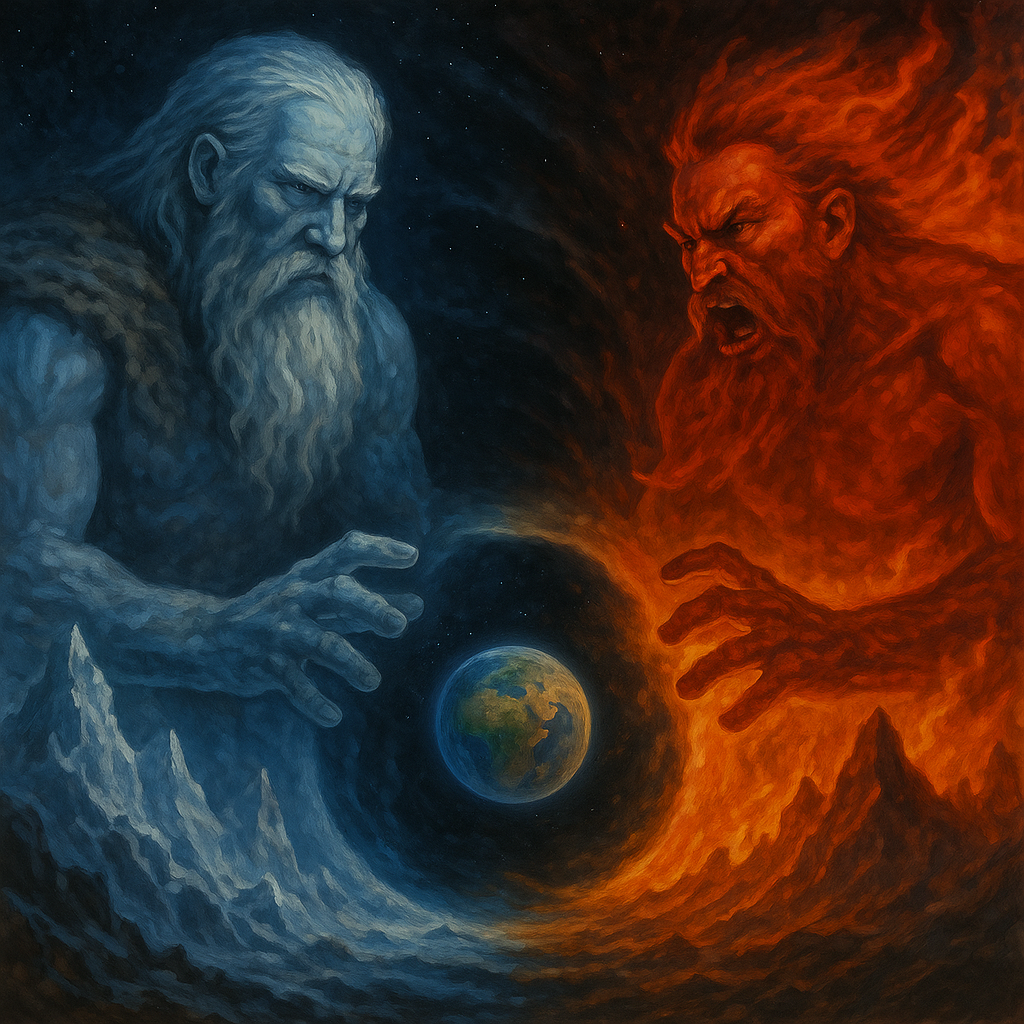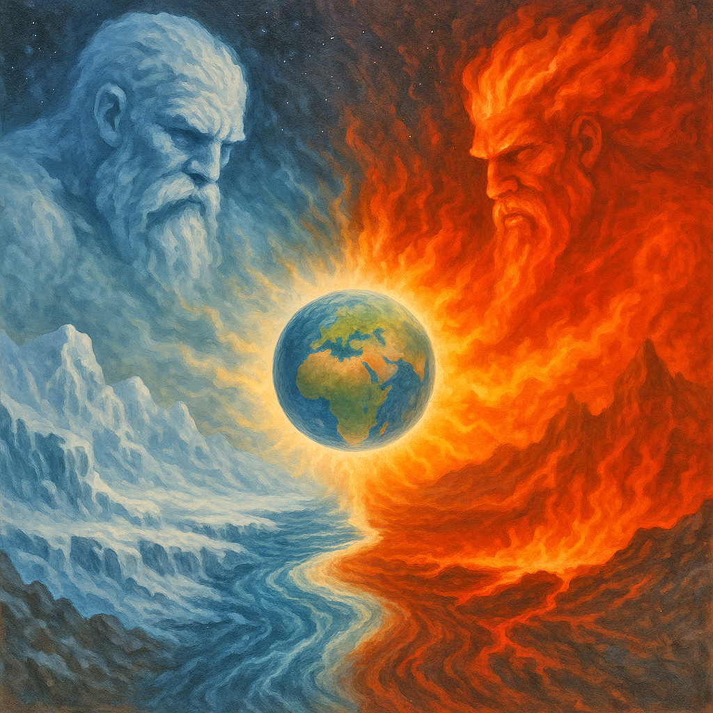 Нордический миф, который отличается особой точностью и внимательностью при описании первоначальных сил и событий, говорит о рождении мира из Огня и Льда, которые совместно и порождают Мировой поток – Эливагар.
