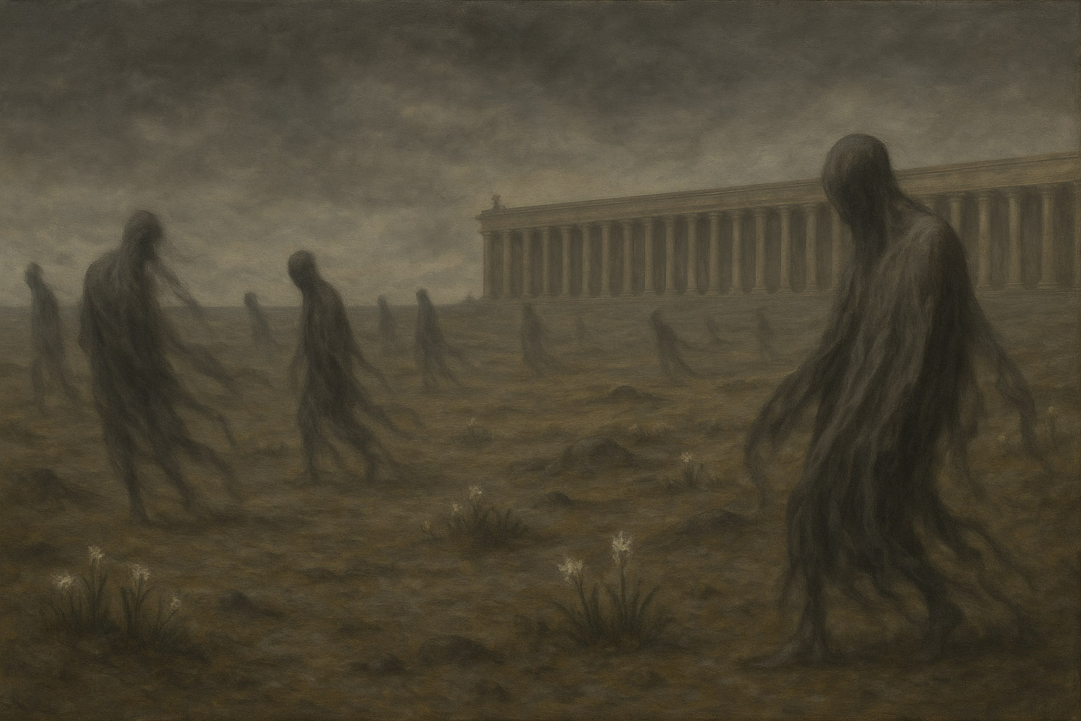Во втором случае тени и формируют особое подпространство в межмирье, которое традиционно называют «Асфоделиевыми лугами». Они обычно описываются как нейтральное, сумеречное и лишённое ярких эмоциональных проявлений пространство. Поля, покрытые бледными, призрачными цветами асфоделий, воплощают полузабвение, в котором здесь пребывают тени. Лишённые активного самосознания, они движутся по этому пространству, словно опавшие листья, переносимые тихим и постоянным ветром памяти. Тени обладают лишь частичной осознанностью и не способны на настоящие осмысленные действия. Они не имеют полноценной личности, воли или сознательной памяти, а лишь несут фрагменты эмоций, привычек, стереотипных реакций, которые были достаточно сильны, чтобы исчезнуть мгновенно после смерти.