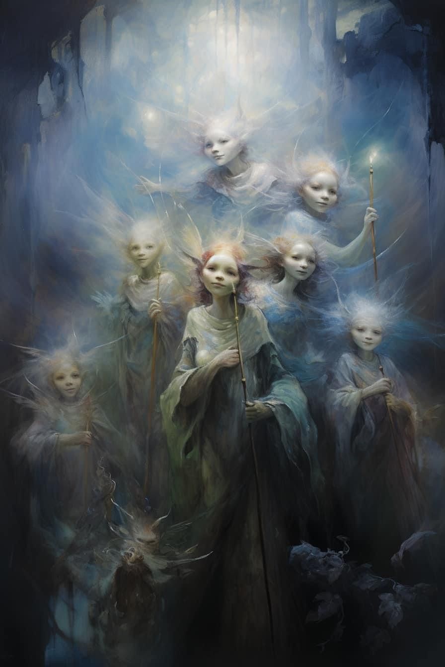 В этом смысле фейри — это такая разновидность «старшей жизни», которая существует на грани вероятности и оформленности, и сама по себе является способом превращать потенции — в актуальность через тонкое смещение обстоятельств, когда событие созревает и происходит вроде бы само собой. Говоря иначе, можно сказать, что фейри — это принцип «не-прямой причинности». Они проявляются как сдвиг условий, после которого события складываются «сами». Это похоже на то, как садовник не тянет растение вверх, а меняет почву, свет и воду — и рост происходит.