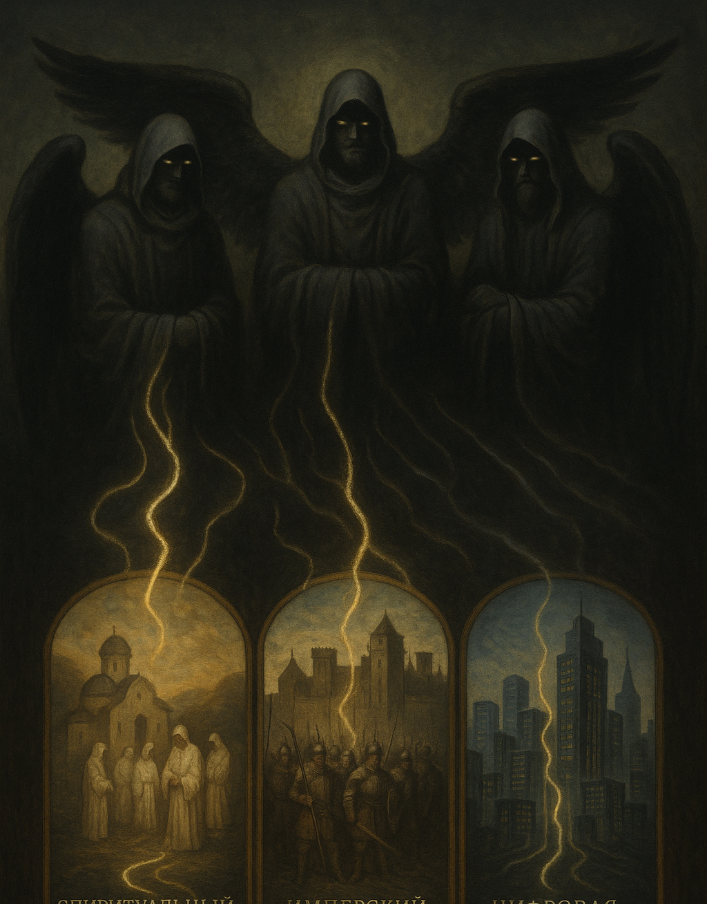 В результате и сформировался тот тип человека, который оказалось так удобно использовать в техногенном проекте: мобильный, обучаемый, способный к специализации, но редко задающий вопросы о том, кто именно выбирает направление отбора. Аграрные империи, первые города-государства, средневековые религиозные системы, бюрократии Нового времени, индустриальные державы — все эти формы по-своему удобны григори: они создают тесную сеть правил и инфраструктур, через которые можно влиять исподволь, не выходя «на сцену» прямо.