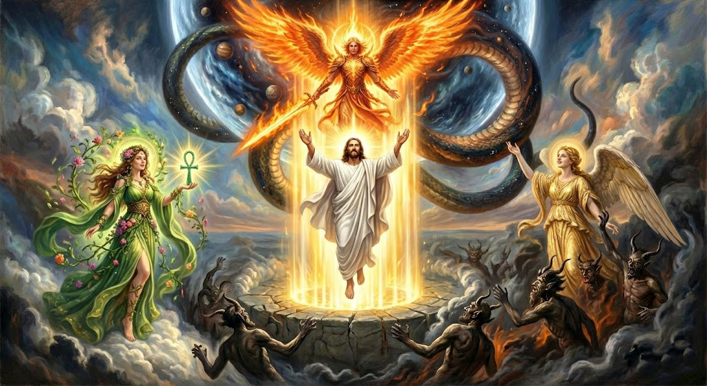 Когда познание перестает быть лишь системой объяснений и становится вектором превосхождения, оно активирует внутри психики именно этот принцип Саваофа. Это управляющая структура, администрирование, которое знает (ведает) свои сильные и слабые стороны, свои ограничения и свое место, обеспечивая безопасный переход сознания «на тот берег», минуя ловушки слепого Демиурга. Энергия Саваофа позволяет сознанию взаимодействовать с реальностью как с упорядоченным «небесным воинством», чей Правитель уже открыл Врата для высшего ведения. Таким образом, Саваоф — это сила, в которой административная мощь Архонтов встречается с мудростью Софии, превращая инерцию мира в строительный материал для реализации воли Плеромы. Он является стражем и проводником великого дела исправления, благодаря которому путь к Свету возможен из любой точки падения, если только воля выбирает признание Истины и стремление к ней, а не поддержание и наращивание собственной тени.