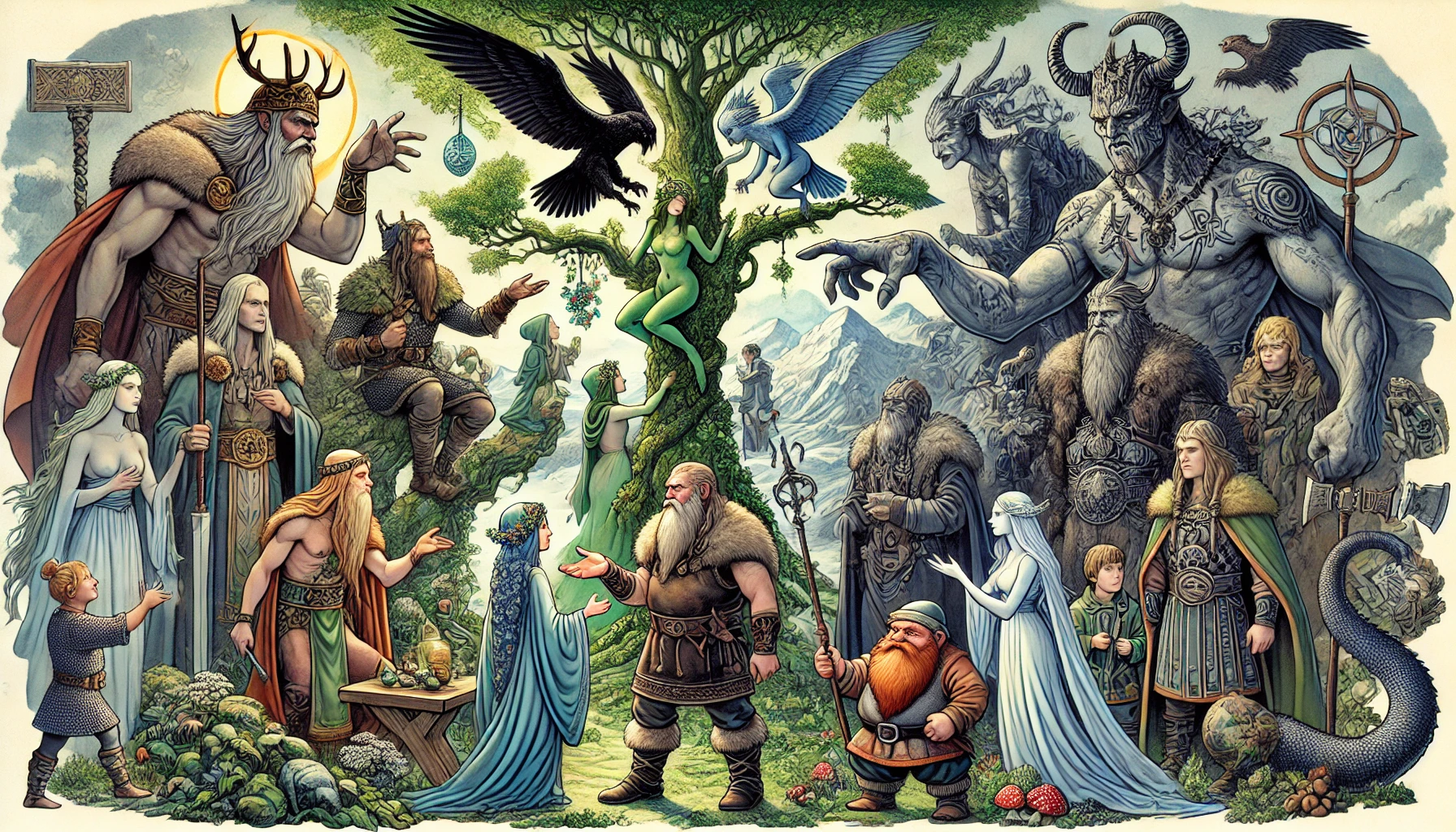 Мы уже не раз обсуждали, что наиболее четкую и структурированную картину участия различных управляющих сил в создании и поддержании оформленного мироздания выработал нордический миф. В силу особой тонкости Грани в северных регионах Европы древние скандинавы (а также кельты) гораздо четче видели роль каждого из Божественных Народов в мировом процессе, чем, например, греки классической эпохи или даже мудрейшие египтяне.