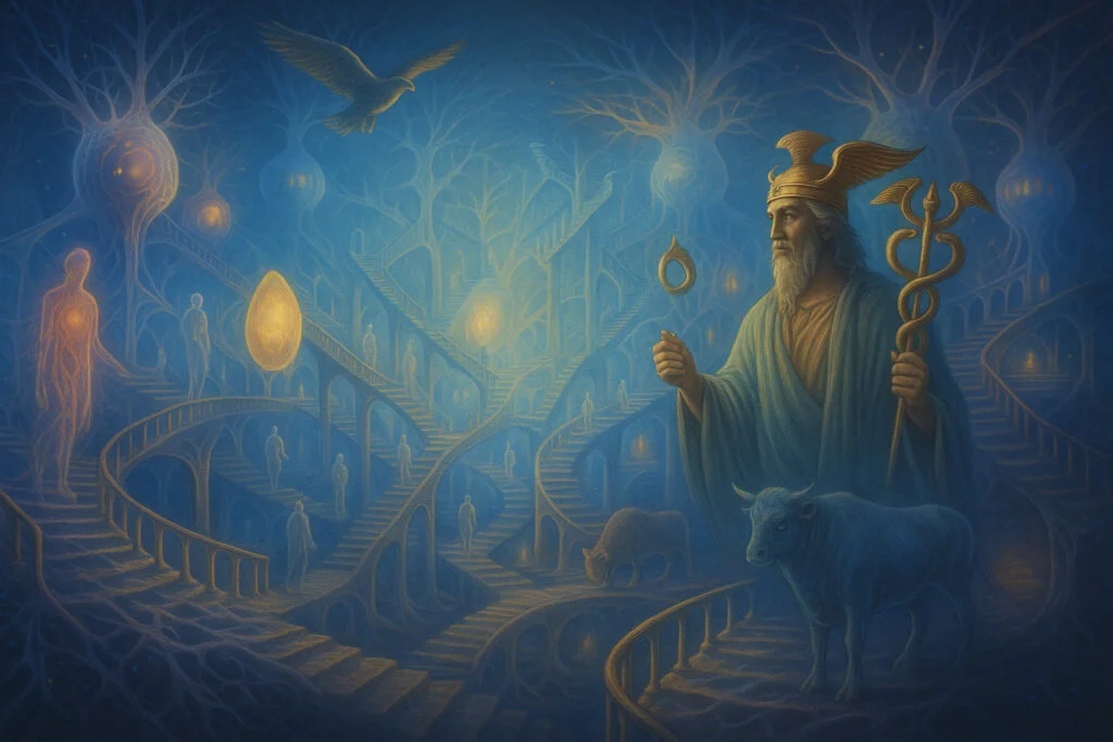 Таким образом, реальность всегда целостно соорганизуется, как система, которая согласует отпечатки прошлого и возможности будущего, формируя наиболее «резонансную» траекторию. И когда физика говорит, что мир движется по пути наименьшего действия, герметическая философия уточняет, что мир реализует то, что наибольшим образом соответствует его смыслу.