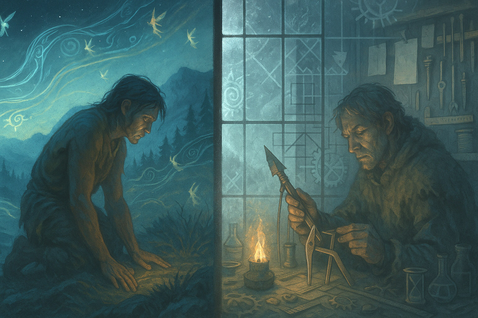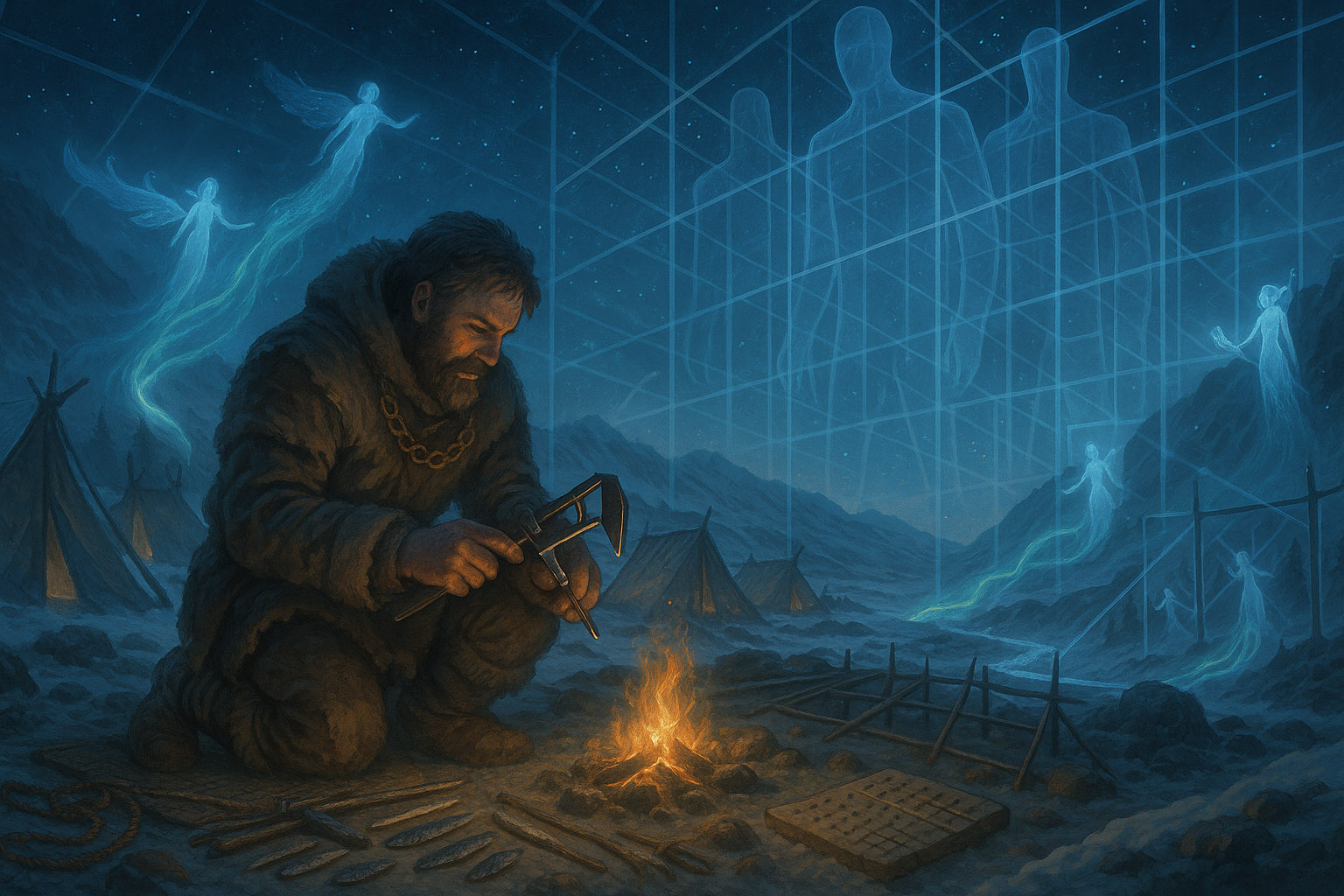 В этих противостояниях сильной стороной людей оказываются не вдохновенные речи о высших мирах, а прагматичный набор операций, которые стабилизируют температуру тела, продлевают ресурс пищи, защищают кожу от ветра, удерживают поселение на заветренной террасе, наводят мосты в нужной излучине, делят год на понятные этапы, связывают разрозненные стоянки обменами и прото-торговлей.