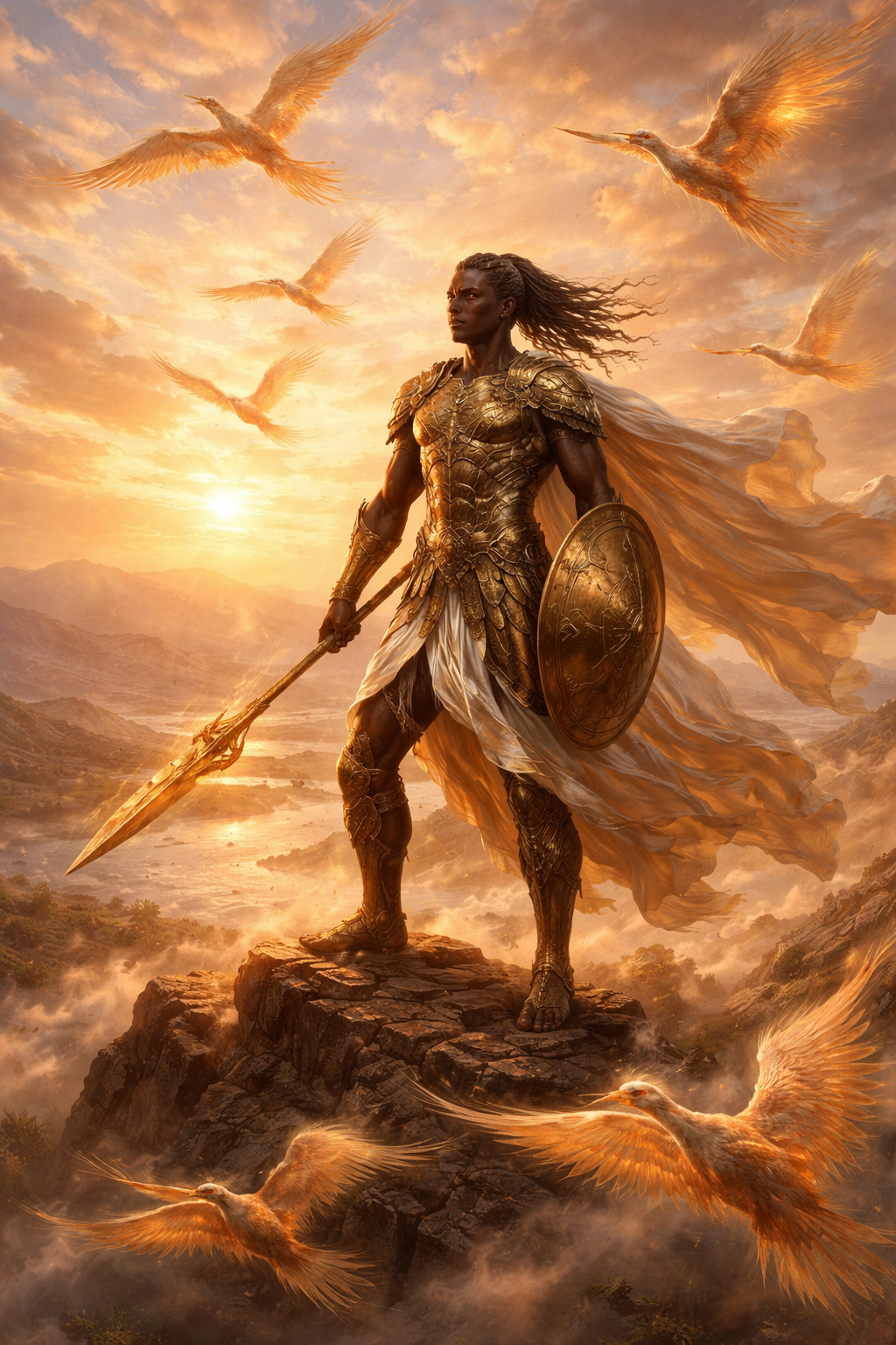 Упомянутый Гомером Мемнон, Сын Зари — царь эфиопов, чей образ неразрывно связан с Востоком, рассветным сиянием и энергией ветра. Его оружие выковал сам Гефест, но его сила была в ослепительном благородстве. После гибели Мемнона от руки Ахилла, Зевс по просьбе Эос даровал ему бессмертие, а из его праха (огня и воздуха) восстали птицы — мемнониды.