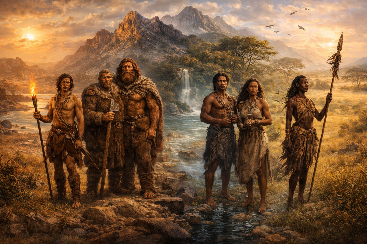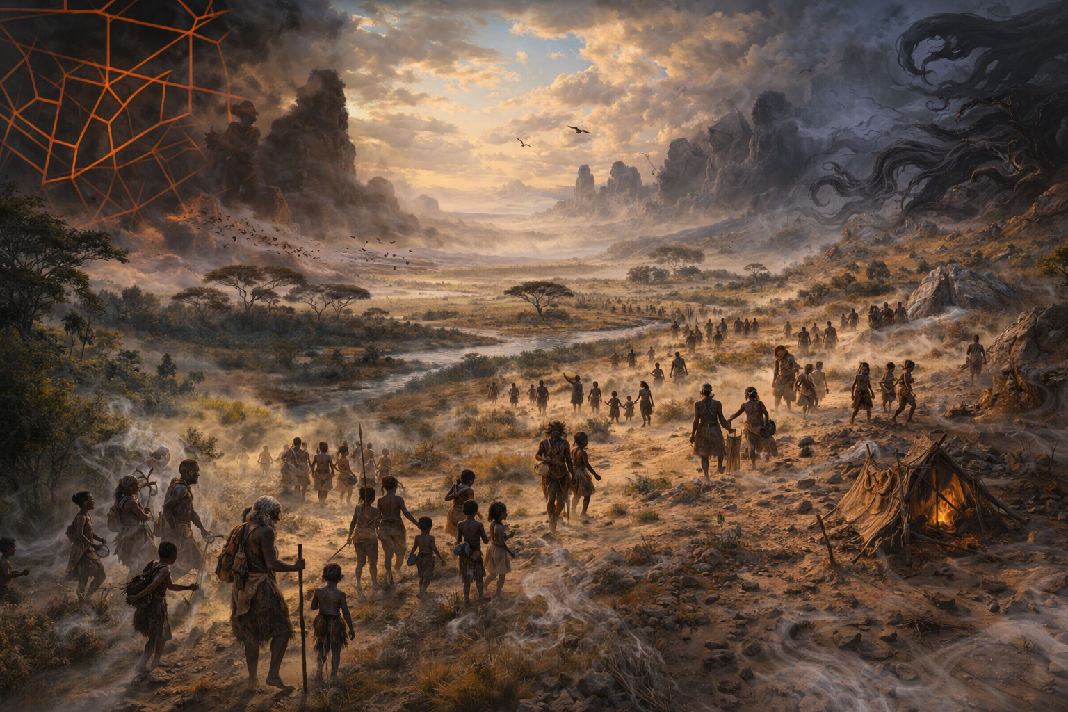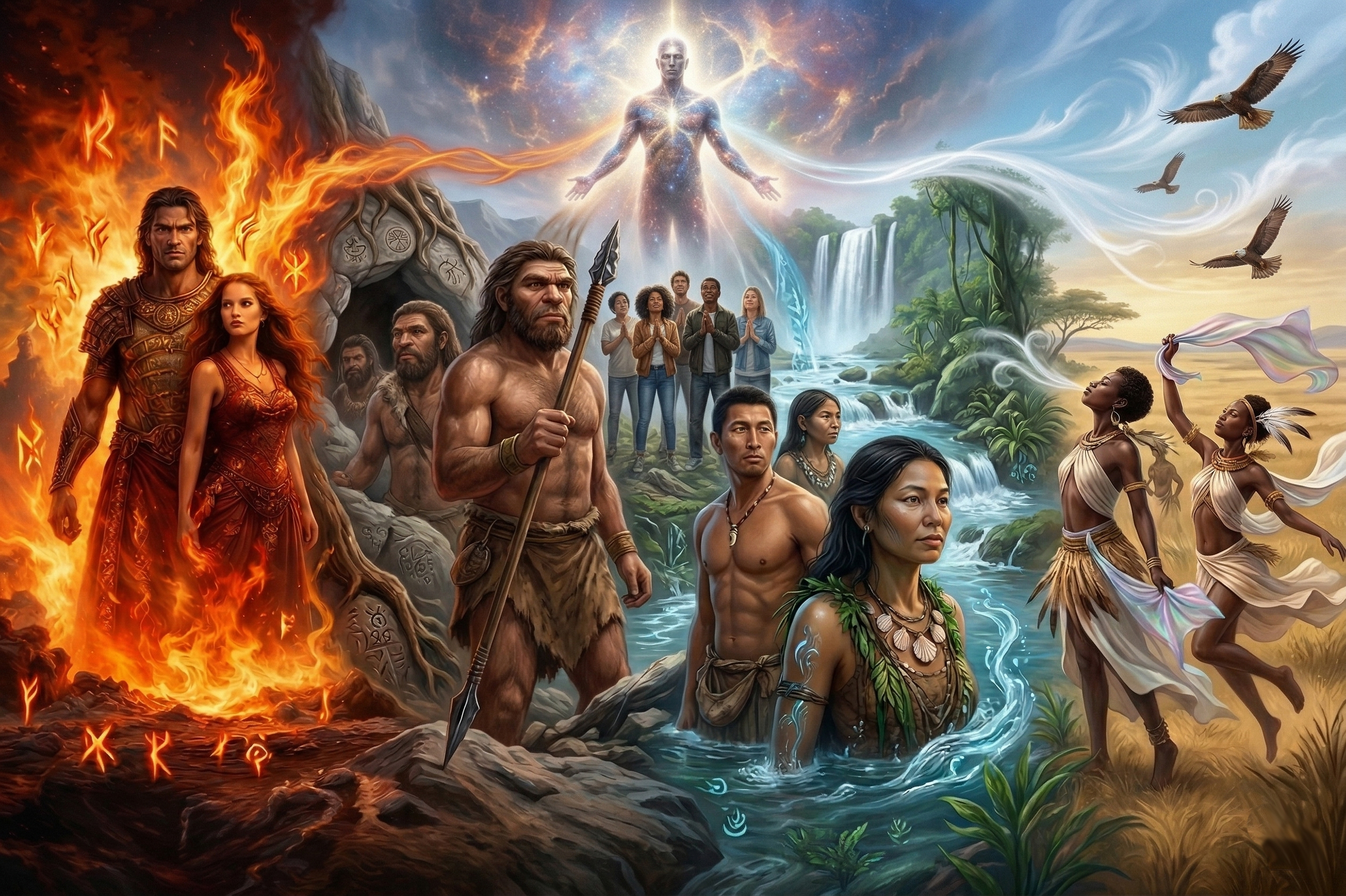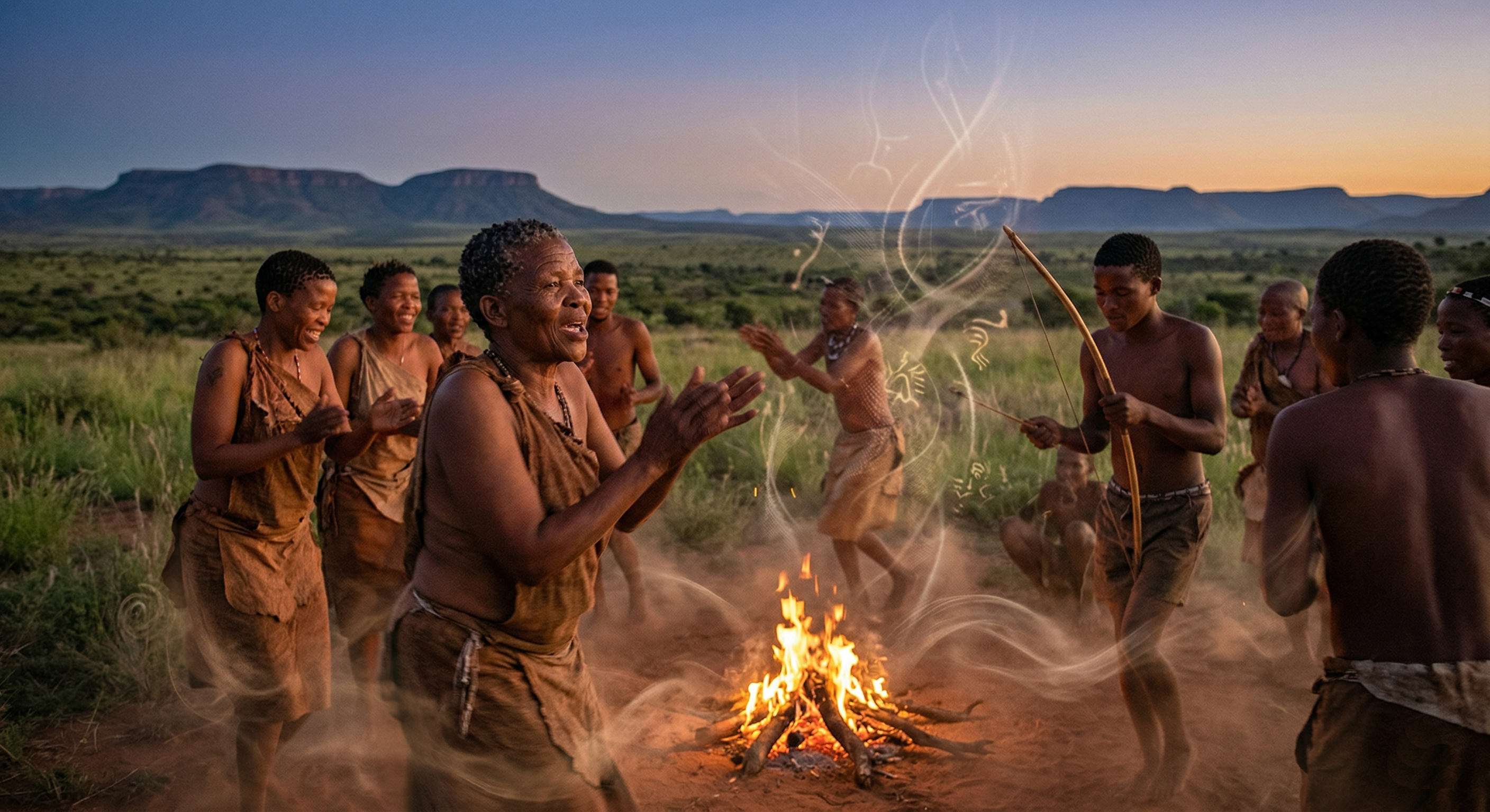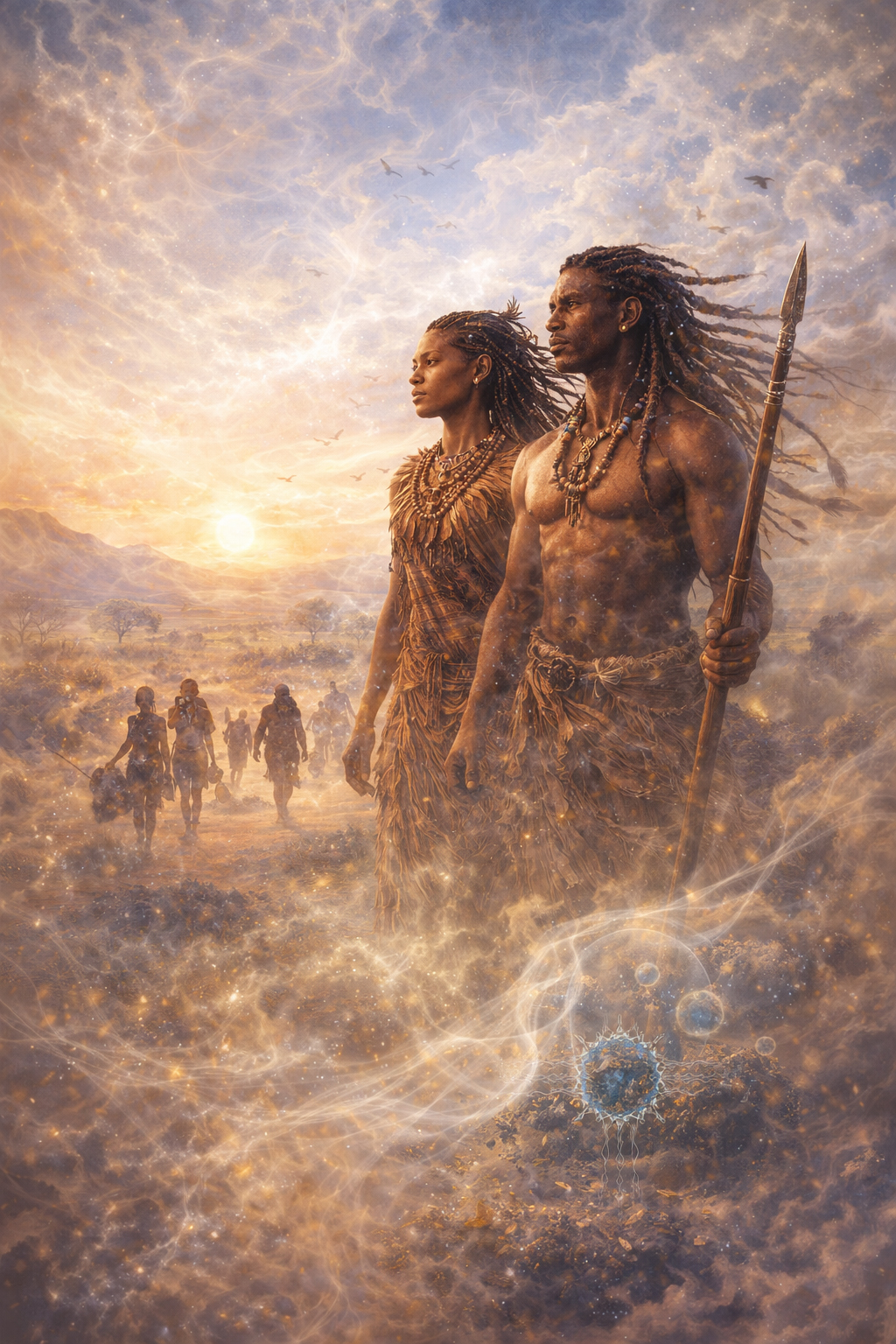 Народы, оставшиеся южнее Сахары, стали прямыми наследниками этого процесса синтеза в его наиболее концентрированном виде. В них примесь «призрачного вида» (Воздуха) остается наиболее значительной и эти южные популяции сохранили эту кровь как часть своей биологической идентичности, которая дает им особую связь с ритмом и интуитивным знанием. «Щелкающие» звуки койсанских языков — это реликтовая «воздушная магия», лингвистический след того Копья Лугха, которое некогда и превратило животный крик в членораздельную структуру.