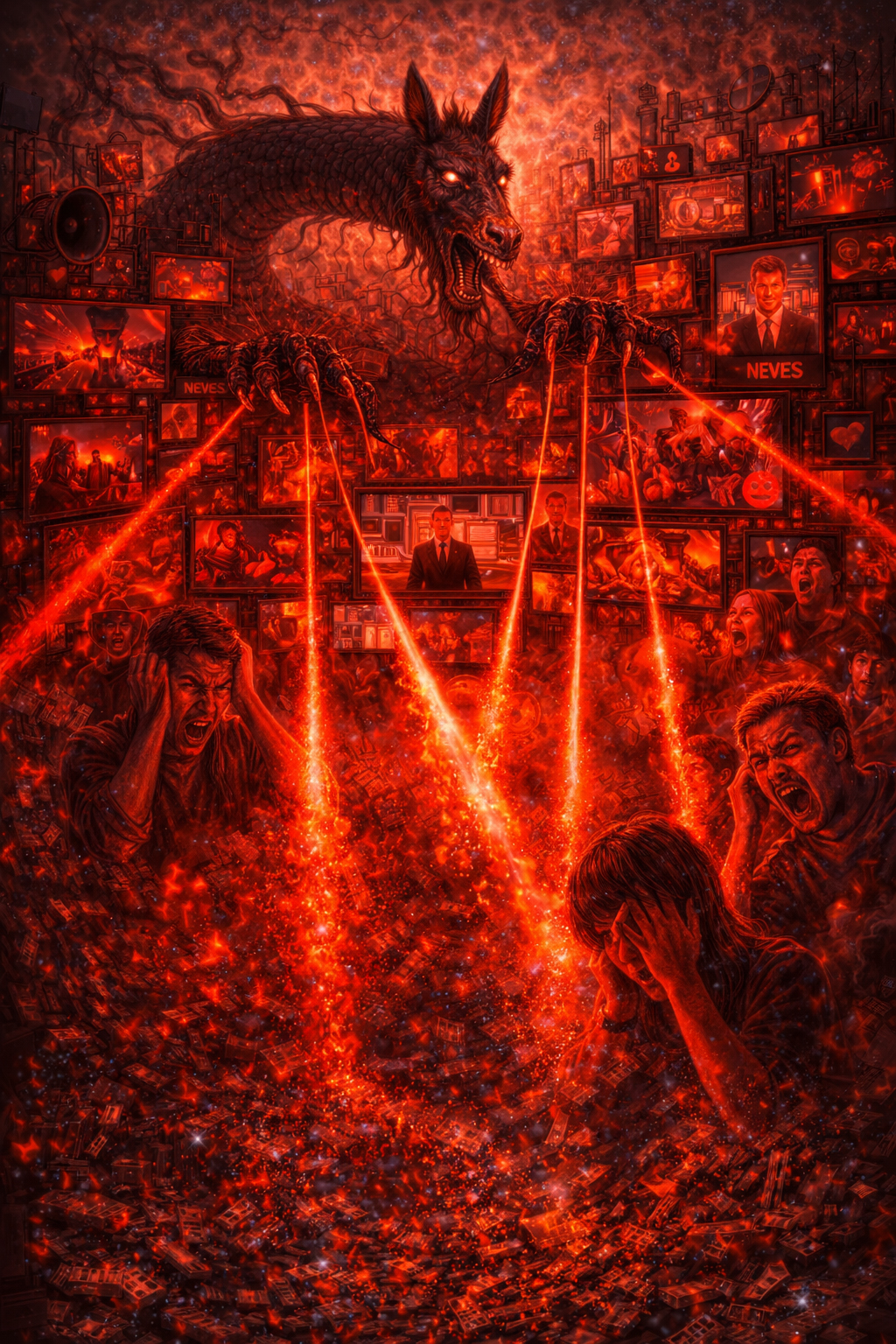 Медиа при этом создают непрерывный поток «красного света» (ненависти и страха), который лишает сознание пауз, необходимых для рефлексии. В состоянии постоянного аффекта человек просто становится не способным заметить, что его мир превратился в декорацию, а общество, пораженное такой шизофренией, перестает производить смыслы и начинает производить только энтропию.