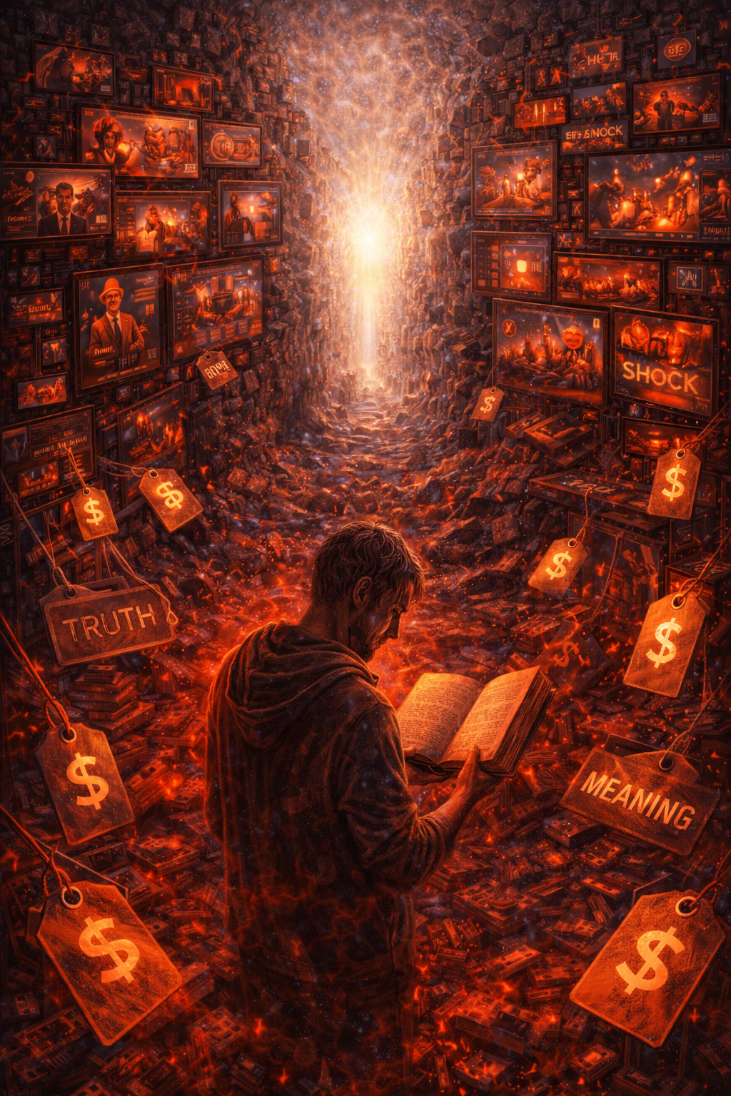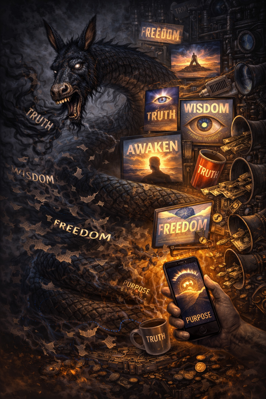 Именно на этой почве масс-медиа Адрамелека и создают экран, который подменяет живой перцептивный поток. Лавина новостей, сенсаций и образов формирует «виртуальное межмирье», где реальные данные тонут в океане семантического шума. При этом такая узурпированная информация служит стабилизации «цифровой пещеры».
