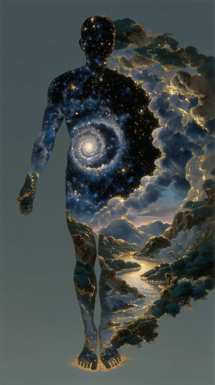 Со средой , материальным вроде как более менее понятно, это кипящая сингулярность, квантовая мена дребезжащих наложенных друг на друга плоскостей вероятностей. Короче можно сказать, что это Глина, из которой мы лепим узор. но вот с Логосом/ сознанием/духом не понятно как его метафорически можно описать ?