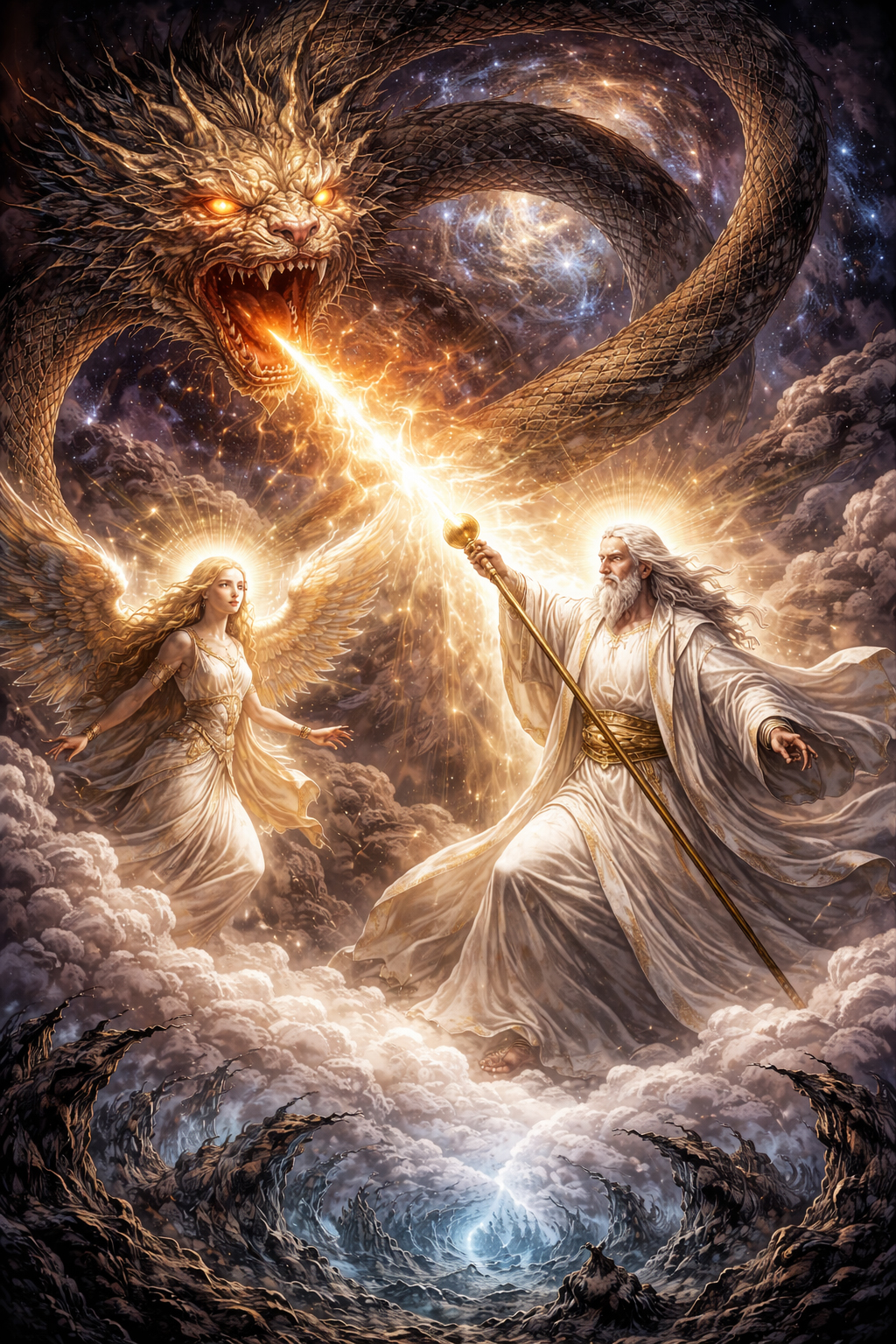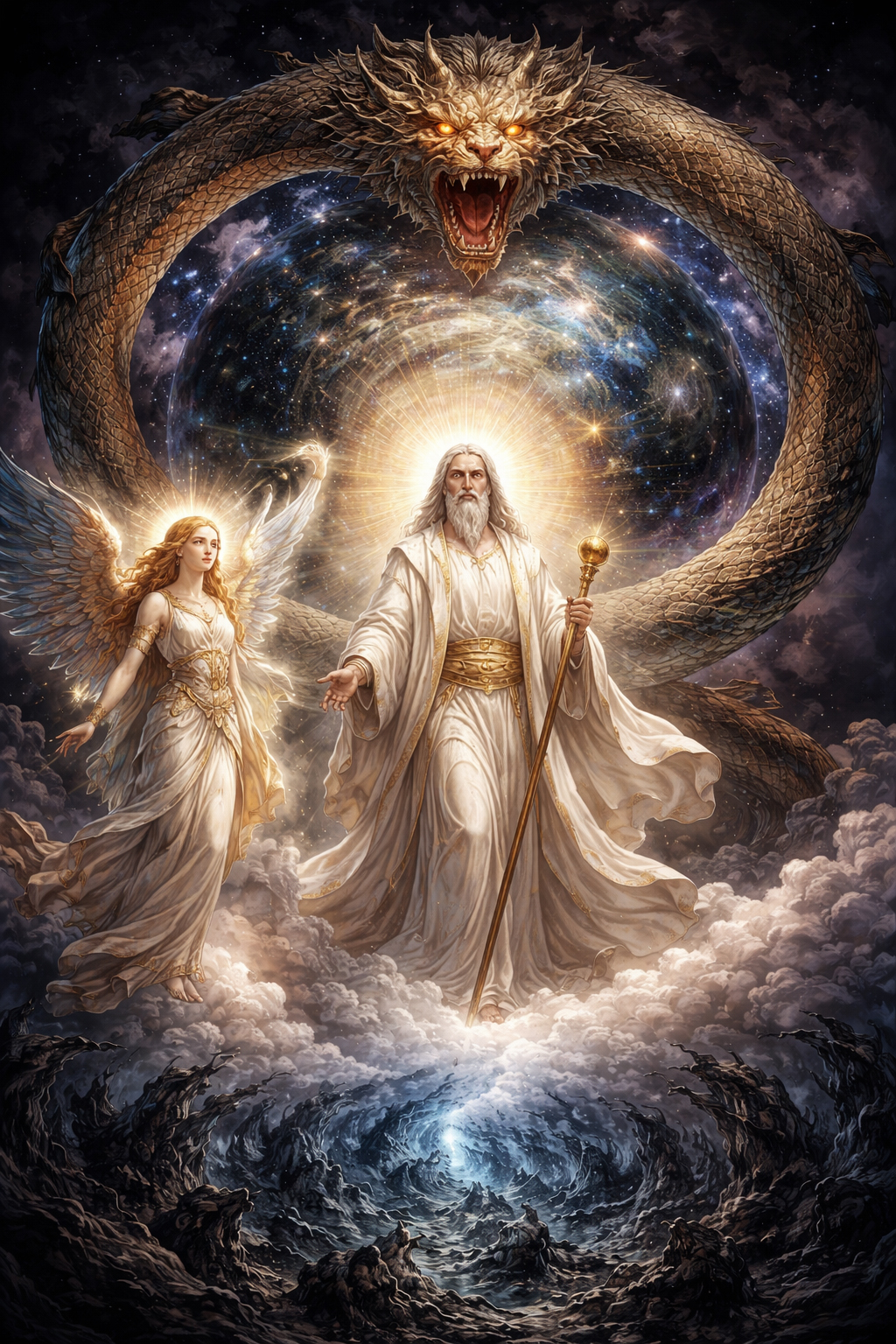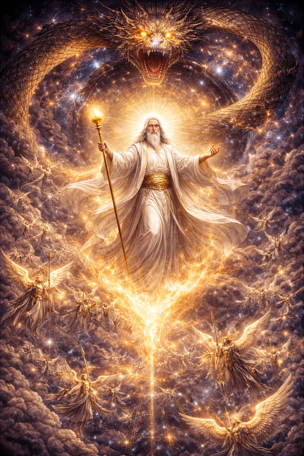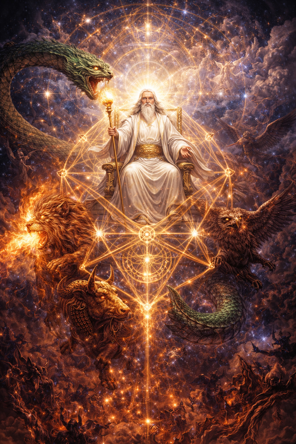 Само Имя «Саваоф» (греч. σαβαωθ, евр. צבאות, Цваот — «воинства», «силы») является ключевым титулом, описывающим такой переход от хаотического созидания к упорядоченному управлению. Множественное число в корне слова следует понимать как указание на бесчисленные структуры, алгоритмы и «небесные чины», составляющие информационную ткань проявленного космоса, поскольку слово «צָבָא» — может означать как звезды, стихии, законы природы, так и «Небесные армии» — ангелы, серафимы, херувимы. И тогда, как Иалдабаоф — это слепой импульс созидания, Саваоф — это владыка тех самых векторов и «ангельских» сил, которые удерживают мироздание в состоянии динамического равновесия, «исключая» из него все «альтернативные» возможности. Примечательно, что этот титул почти не встречается в древнейших пластах Ветхозаветной традиции, становясь доминирующим лишь в эпоху Пророков, что подчеркивает эволюцию понимания принципа организации Вселенной: от идеи племенного покровителя к концепции трансцендентного Правителя, чей масштаб охватывает все космические явления — от движения звезд до токов ангельских иерархий. В этой картине звезды и космические законы сами являются «воинствами небесными», и повелитель их, Адонай Цваот, выступает как сила структурной целостности мира.