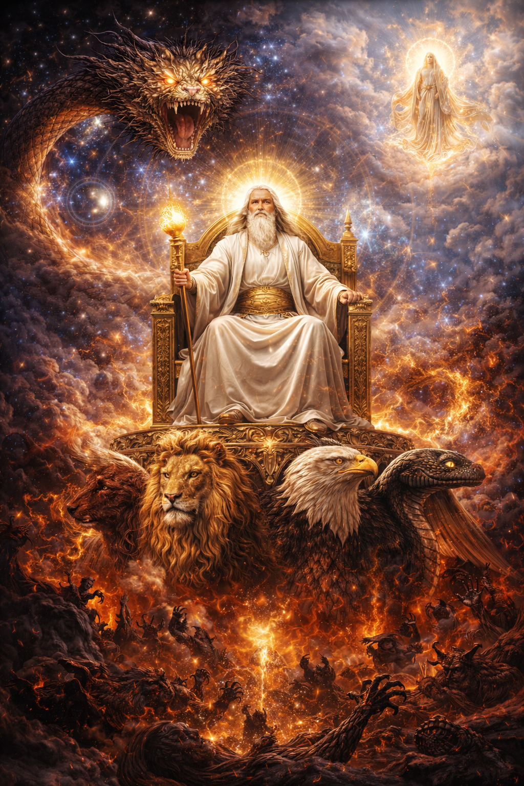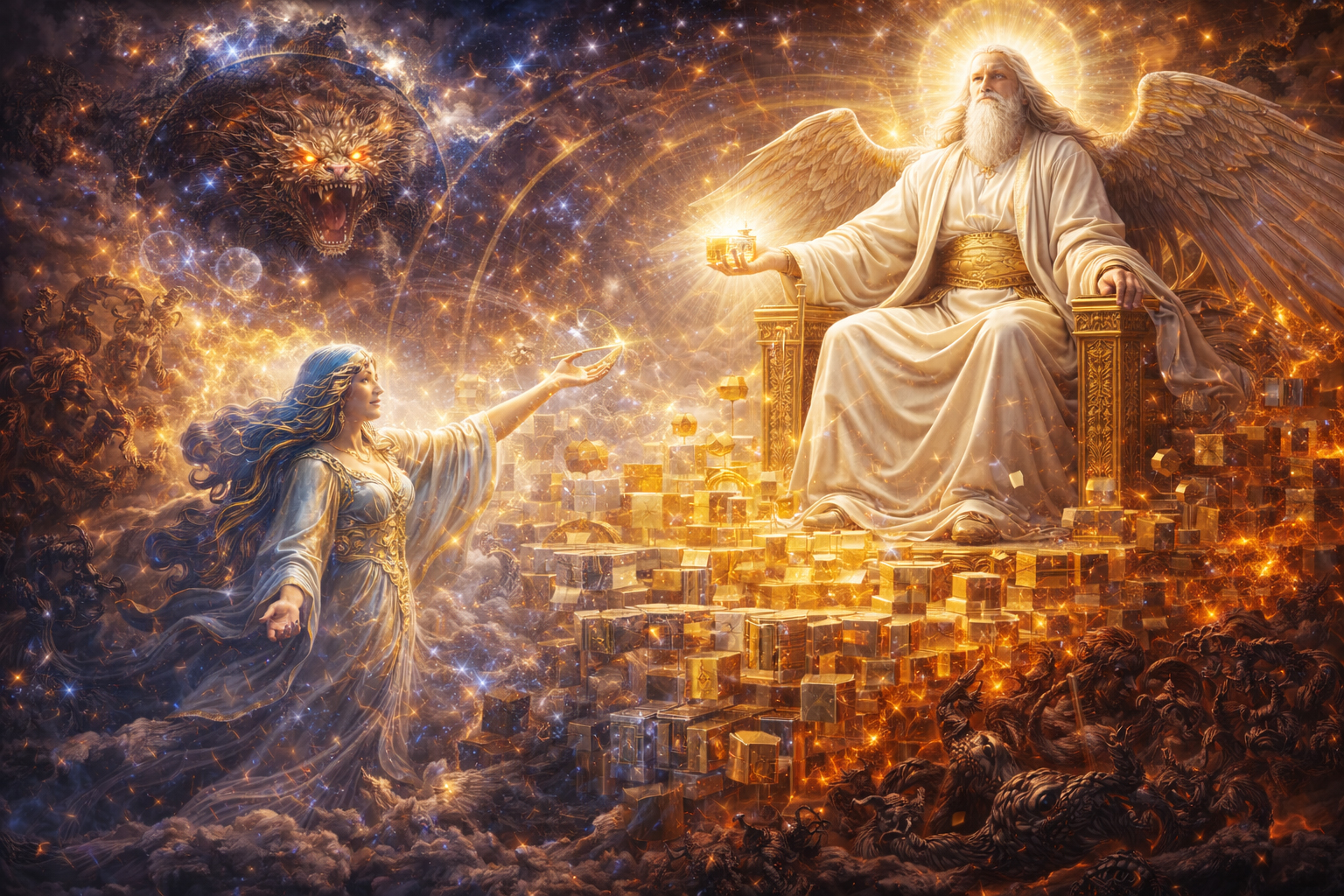 Действительно, если спроецировать конфликт Иалдабаофа и Саваофа на человеческую психику, мы получим карту борьбы за становление Субъекта. В своем «слепом» аспекте Демиург олицетворяет первичные, недифференцированные импульсы бессознательного. Это — состояние «отцовства», где воля направлена только на поглощение и самовоспроизводство, не видя своих границ и не признавая «Иного». Это тот «сон» разума, который гностики называли агнойей (неведением). Гемармен при этом — это те внешние и внутренние ограничения, которые «закрепощают» психику в жестких сценариях. Это тот уровень, где реальность воспринимается как тюрьма или механический набор правил, лишенный живого смысла. А появление Саваофа — это этап, когда внутри системы «желание-закон» возникает третья сила. Это то «Сыновство», которое оказывается «выше» породившего его порядка, потому что оно обладает способностью к рефлексии и различению. Это — волевой акт выхода из сновидческого состояния Промежутка к информационной стабильности. В гностической терминологии, пробуждение Саваофа — это достижение уровня «пневматика», способного использовать демиургические инструменты (волю, интеллект, структуру) для целей освобождения сознания. Другими словами, можно сказать, что Иалдабаоф — это «хочу», Архонты — это «нельзя», а Саваоф — это «осознающий», и такое осознание является единственным путем к подлинному совершенствованию и выходу за пределы гемармена.